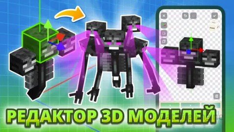 - Редактор моделей: позволяет изменять ось вращения кубов, их местоположения и ориентацию в пространстве, создавать/ удалять копии.