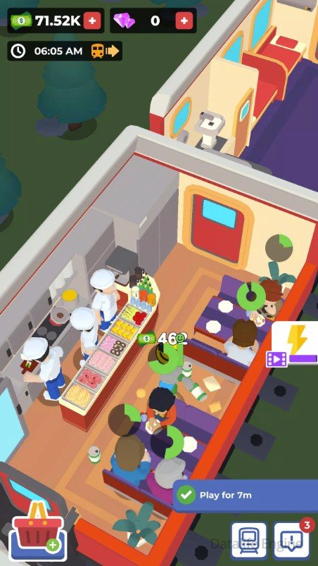 Train Hotel (Mod бесплатные покупки) – отличный вариант для тех, кто любит путешествовать или мечтал создать собственный гостиничный бизнес (или только начал о нем задумываться). Цель игры: комфортно разместить всех гостей – пассажиров, обеспечив их вкусными блюдами и другими удобствами. Особенность игры состоит в том, что каждое действие пассажира приносит доход. Поэтому, чтобы получить максимальную сумму, нужно своевременно проводить обновление всего: от ассортимента блюд и напитков до обстановки в комнатах вагона – отеля. Даже зону обзора, для получения прекрасных видов из окна, тоже можно будет улучшить. Все обновления проводятся за счет денег от действий клиентов (некоторые суммы можно будет получить бесплатно при прохождении уровней и выполнения небольших заданий). Также стоит учитывать, что на реализацию всех пожеланий дается ограниченное количество времени. И чем меньше будет времени и недовольнее клиент, тем меньше будет получено в итоге денег. Сложность будет расти в каждом уровне. Поэтому необходимо сразу просчитывать стратегию, быть внимательным и быстрым, чтобы занять высокие строчки в рейтинге среди других пользователей.
