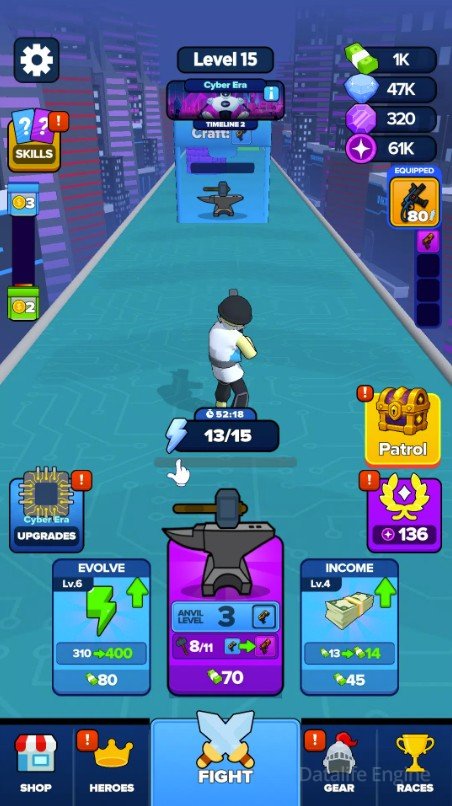 Игровой процесс построен на жанре раннер и ролевых элементах, например, улучшение персонажей, сбор отрядов, развитие способностей. В начале у вас несколько героев. Но проходя через через специальные ворота, вы умножаете численность отряда. Уровни рассчитаны на 2–3 минуты активного геймплея. После каждого забега игрок получает награды и может улучшить отряд. На пути следования встречаются враги и ловушки. Нужно маневрировать между ними, выбирать выгодные ворота, например, прибавка к урону или новые бойцы.