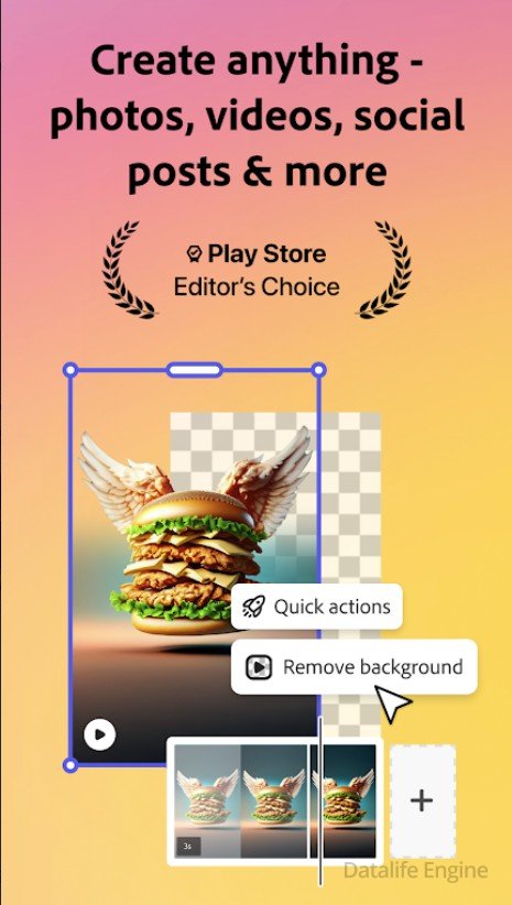 Adobe Express: AI Photo, Video (Mod Premium/полная версия) - приложение для быстрого и удобного создания контента. Вы можете за несколько минут создать то, на что раньше уходили часы: красиво оформить рекламу, подготовить сторис, видео, обложку или баннер.