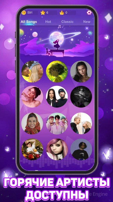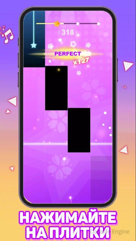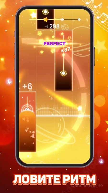 Galaxy Piano (Mod без рекламы/все открыто) уникальная ритм – игра, позволяющая одновременно насладиться разными музыкальными композициями, и отработать чувство ритма, улучшить память. Также к плюсам данного приложения стоит отнести: