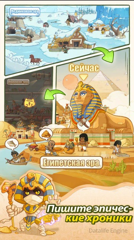 Bonk Bonk Tribe (Mod бесплатные покупки/без рекламы) предлагает вам пройти через все этапы развития человечества, начиная с Ледникового периода и до современности. Во главе небольшого племени, вы побываете в самых значимых эпохах и не просто побываете, а пройде через все испытания, которые довелось пережить нашим далеким предкам. А начнется ваше приключение с выбора персонажа, которого вы и будете развивать в ходе прохождения. Это может быть мужчина или женщина. Настройте внешность своего героя и приступайте. Вас ждут встречи с представителями разных эпох. Они откроют вам интересные подробности о своих исторических периодах, помогут сделать важные открытия и факты. Каменный век или эпоха Возрождения - у каждого из этих этапов есть свои тайны и особенности. Используйте их, чтобы превратить свое небольшое племя в процветающую империю. Усиливайте свою команду различных историческими личностями и идите вперед сквозь невзгоды и стихийные бедствия. Толкайте цивилизацию к процветанию и наслаждайтесь результатами своих трудов.