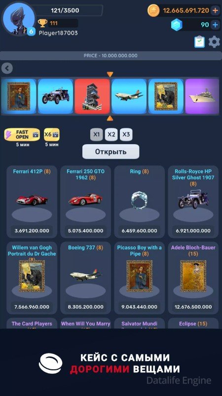 TapCase - Кейс Симулятор (Mod много денег) открывает перед игроком интересный мир, где можно собрать коллекции из разных предметов: от телефонов до самолетов. Особенности игры следующие: