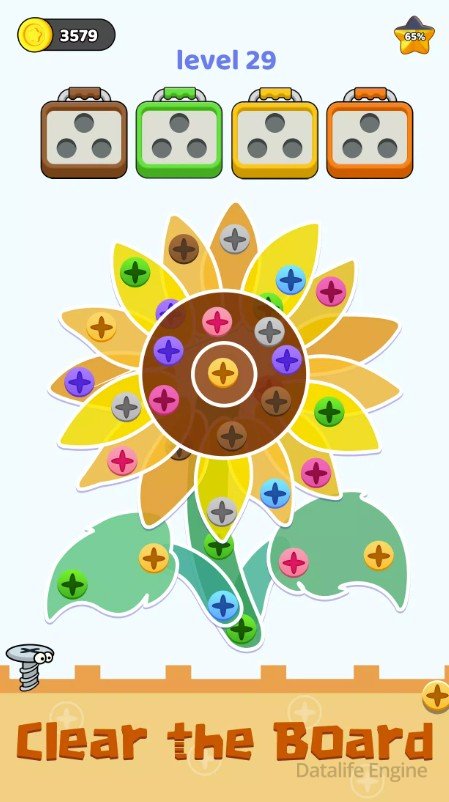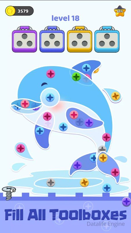 Screw Jam Master (Mod без рекламы/бесплатные покупки) погружает пользователя в уникальный мир головоломок с винтами. Главная цель пользователя: наполнить коробки болтами определенного цвета (болты должны по цвету совпадать с коробками). Простая задача осложняется тем, что каждый ход влияет на расположение головоломки. К особенностям стоит также отнести: