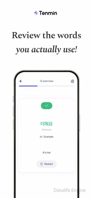 Tenmin (Mod pro) – практичное приложение на базе искусственного интеллекта, позволяющего освоить разговорную речь любого иностранного языка. Какие еще плюсы здесь можно выделить? Это: